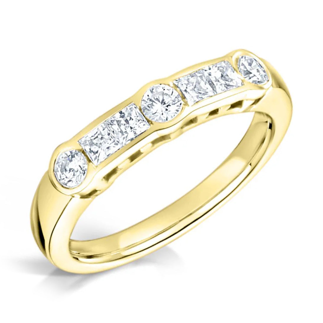 Round & Princess Cut Deco Style Fairtrade Gold Engagement Ring
